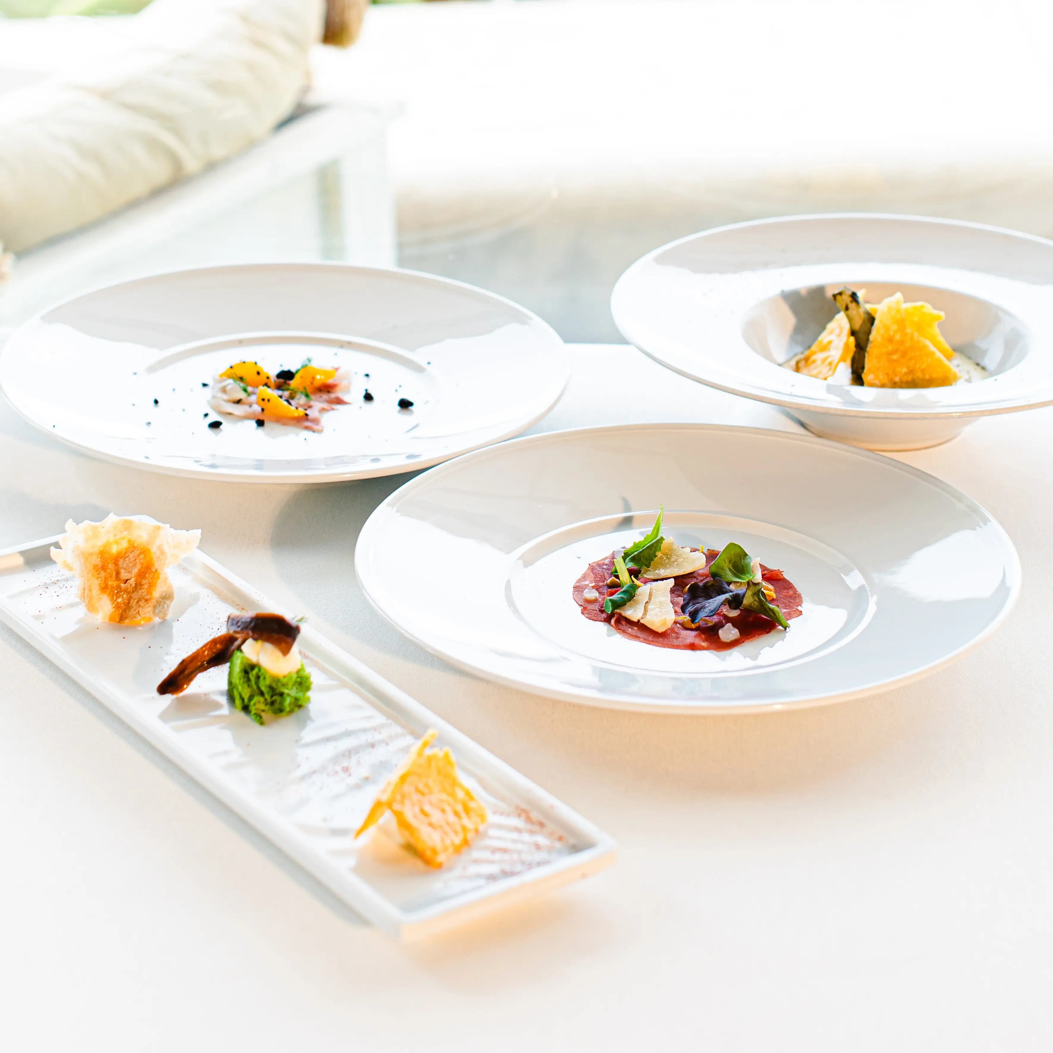 Accanto alla musica, la cucina contemporanea di pesce del Riva brilla con la valorizzazione dei prodotti e il rispetto del loro naturale ciclo di vita. Gli ospiti potranno scegliere tra il menu à la carte per un'esperienza personalizzata, o il menu degustazione creato ad hoc: un percorso innovativo che rielabora sapori tradizionali calabresi in creazioni audaci, dove freschezza, texture contrastanti e aromi mediterranei si fondono in un dialogo armonioso. Ogni portata invita a una scoperta sensoriale, rendendo il pasto non solo nutrimento, ma celebrazione della terra e del lavoro che la rende generosa.