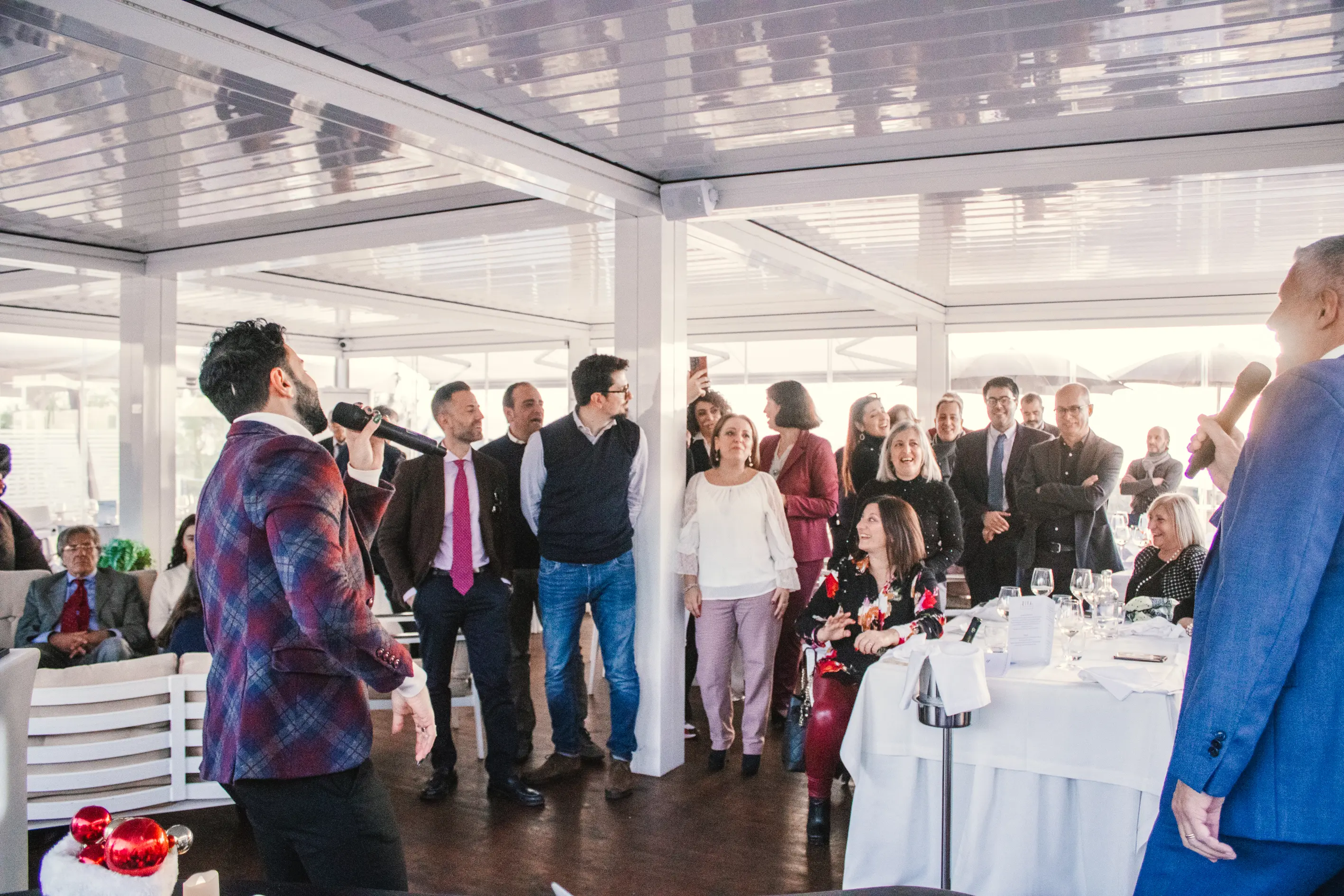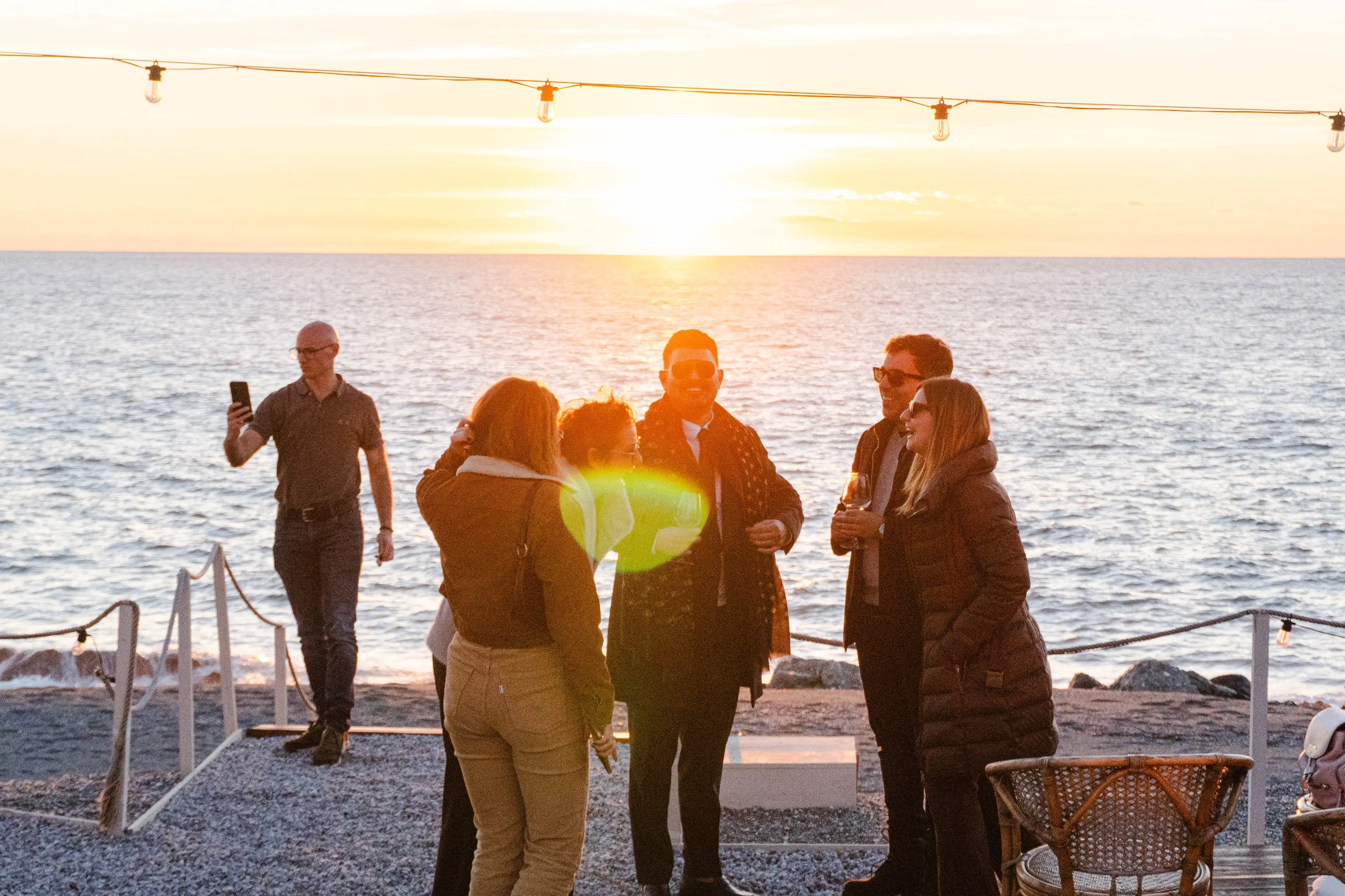 Gli ospiti possono scegliere di accomodarsi all’interno o all’esterno, grazie alle comode sedute nel giardino vista mare e l’ambiente riscaldato, oppure vivere l’aperitivo in piedi, lasciandosi coinvolgere dal ritmo della musica. A fare da cornice, il mare e le decorazioni natalizie, che regalano un’atmosfera suggestiva e avvolgente. Le sonorità del DJ set scandiscono la giornata, creando il sottofondo perfetto per sorrisi, conversazioni e brindisi, in un equilibrio riuscito tra eleganza e spensieratezza.