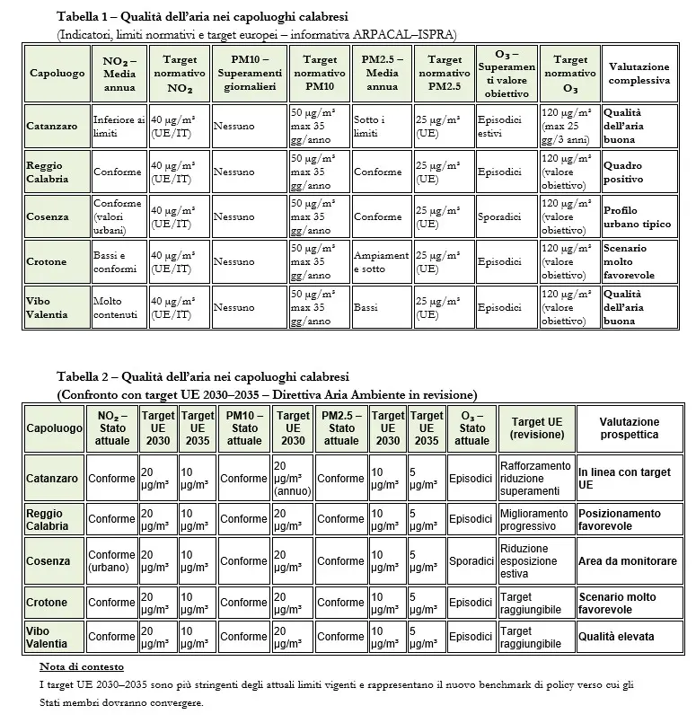 «I dati 2025 sulla qualità dell’aria nei capoluoghi della Calabria delineano un quadro molto positivo e in linea con i limiti previsti dalla normativa vigente». È quanto emerge dall’informativa ufficiale trasmessa da Arpacal a Ispra, elaborata sulla base del sistema regionale di monitoraggio e degli indicatori condivisi a livello nazionale dal Sistema nazionale per la protezione dell’ambiente (Snpa).