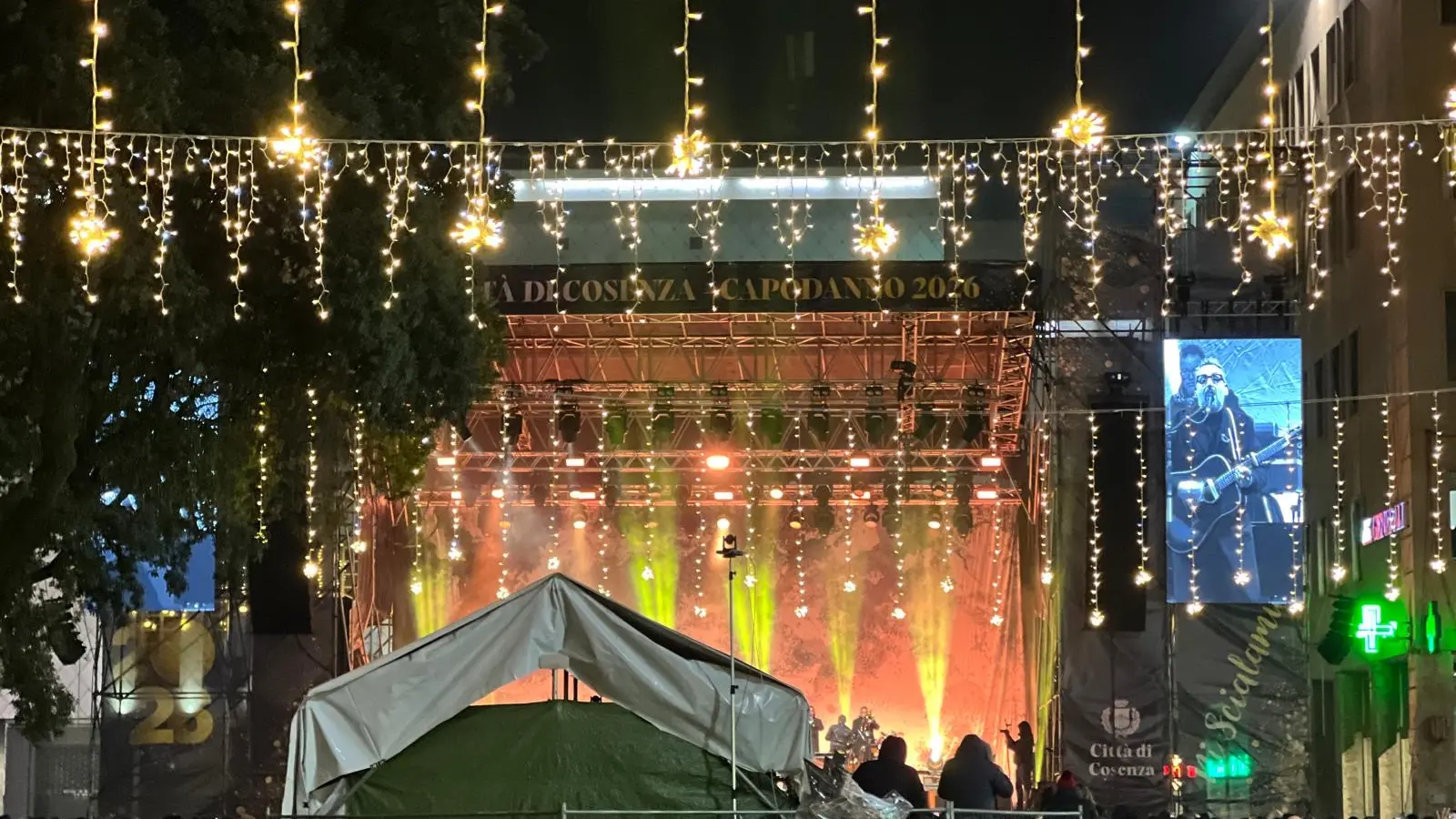 C’è un momento preciso, mentre i rintocchi della mezzanotte sbiadiscono nell’eco dei brindisi e il gelo pungente della Sila e del Cocuzzo scivola giù lungo il corso del Crati e del Busento, in cui capisci che non sei semplicemente a un concerto di Capodanno. Tu sei lì, immerso nel cuore pulsante di Piazza dei Bruzi, e senti il calore delle spalle della gente che premono contro le tue. Ti guardi intorno e vedi una geografia di volti di ragazzi con gli occhi incollati allo smartphone, di padri che sorreggono figli piccoli sulle spalle come sentinelle del futuro, e di anziani con i cappotti pesanti che osservano tutto con una saggezza silenziosa. In quella piazza, Dario Brunori non è salito sul palco per fare una passerella, ma per compiere un’indagine profonda sull’essere umano, trasformando la musica in una radiografia dei sentimenti che ci tengono in piedi.