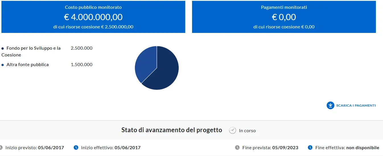 Qualche elemento in più: l’inizio previsto (ed effettivo) dei lavori era il 5 giugno 2016, il completamento dell’opera era previsto per il 5 settembre 2023.