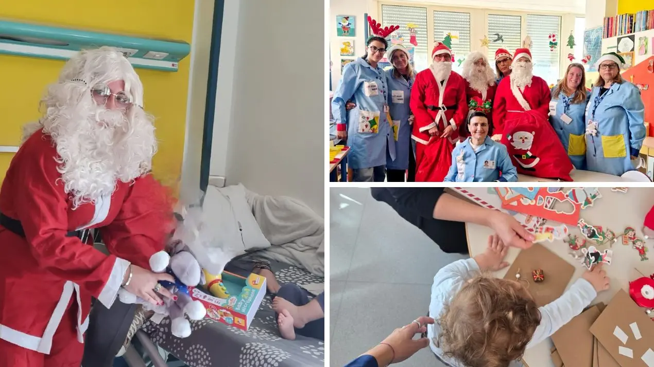 Per bambini, adolescenti e familiari la visita di Babbo Natale ha rappresentato un radioso intermezzo nella quotidianità ospedaliera. I promotori: «Operatori e volontari fanno del loro meglio per far sentire la festa anche lì»