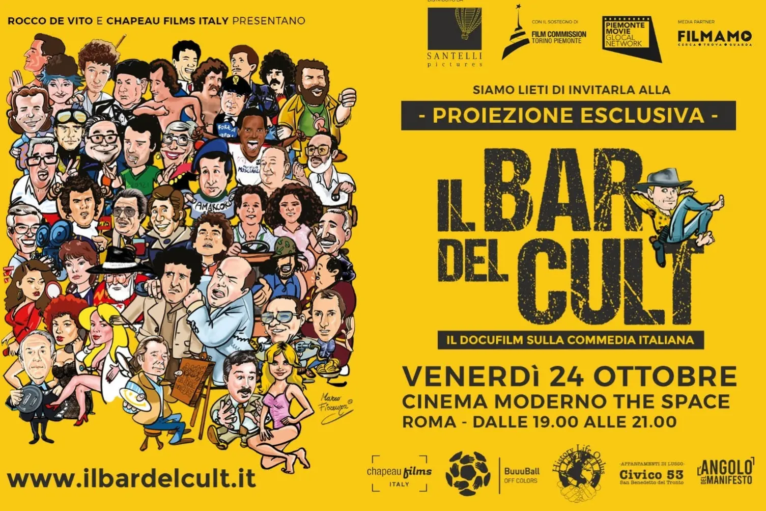 A seguire la proiezione de Il bar del cult il docufilm sulla commedia italiana con protagonisti le star del cinema anni ’70-‘80 tra cui Lino Banfi, Carlo Verdone, Pippo Franco, Sergio Martino, Enrico Vanzina, Jerry Calà, Gigi & Andrea, Carmen Russo, Mirella Banti, Luc Merenda e l’indimenticabile Alvaro Vitali , ideato da Rocco De Vito con la regia di Mirko Zullo.