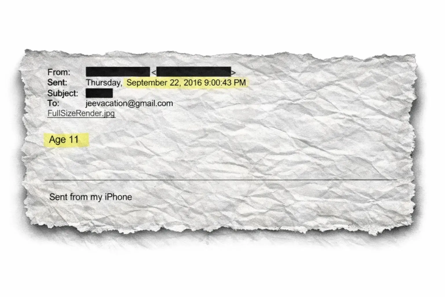 Anche qui il nome del mittente è coperto, ma il racconto è ugualmente raccapricciante. Sembra si parli di un aborto e della scomparsa del neonato; il tutto avviene sotto gli occhi di Ghislane Maxwell, la compagna e complice di Epstein.