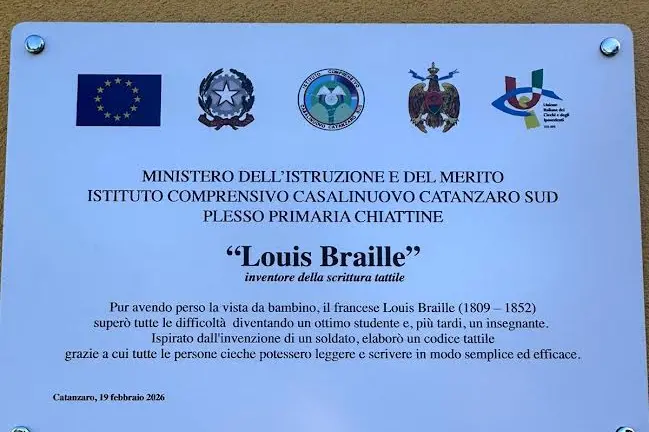 Questa mattina Catanzaro ha celebrato la 19ª Giornata Nazionale del Braille con la cerimonia di intitolazione del plesso della scuola primaria “Chiattine” del quartiere Aranceto dell’Istituto Comprensivo Casalinuovo Catanzaro Sud, a Louis Braille, inventore del sistema di scrittura tattile.