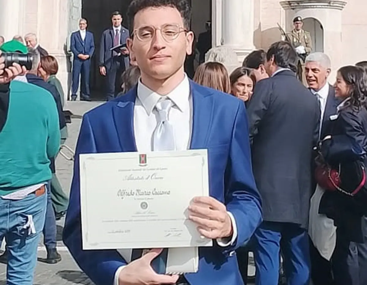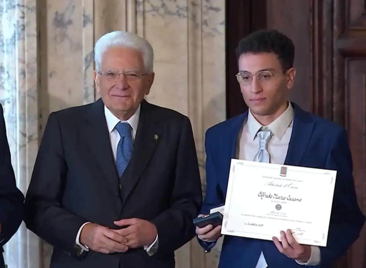 Questa mattina al Quirinale la cerimonia. Lo studente in giurisprudenza della Mediterranea, si è diplomato con il massimo dei voti dopo una brillante carriera scolastica al liceo scientifico Leonardo Da Vinci