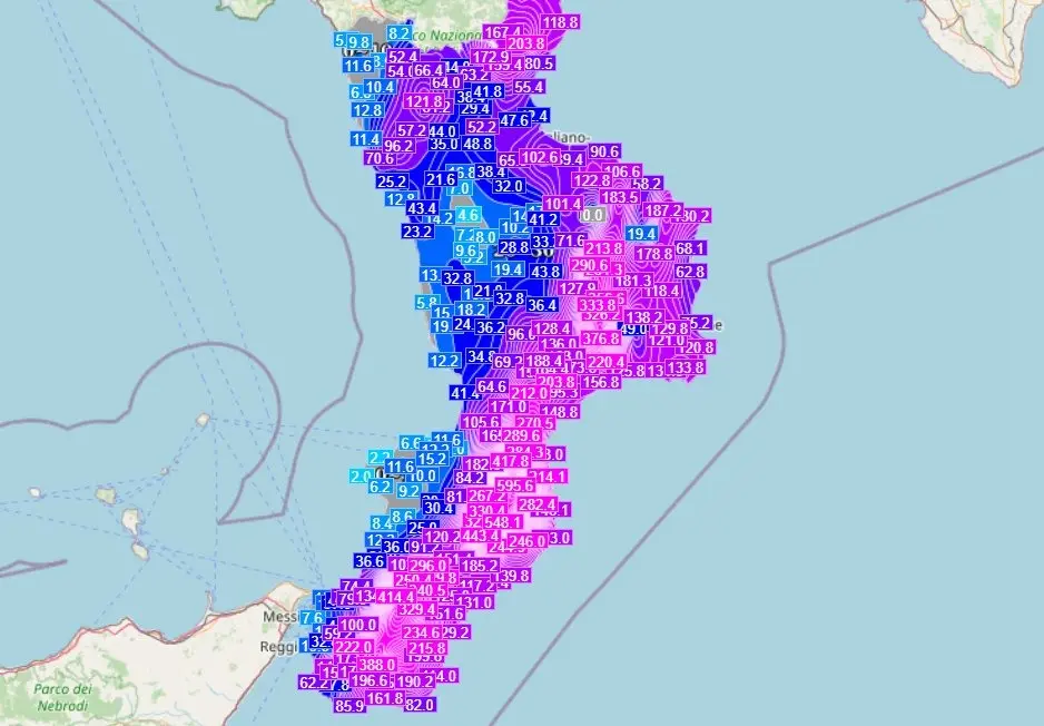 Dati alla mano, ecco l'accumulo totale da inizio evento grazie alle stazioni meteorologiche Arpacal (dati in 72h):