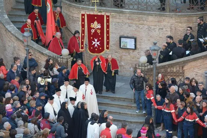 La Naca non è una Via Crucis bensì una processione penitenziale che fino al 1937 si svolgeva ad iniziare dal Giovedì Santo e si concludeva a notte del Venerdì Santo con la partecipazione delle quattro congreghe che a turno, secondo prestabiliti e antichi ordini di precedenza, orari preordinati e percorsi fissati, percorrevano le vie della città visitando, reciprocamente i “sepolcri”. Ogni Arciconfraternita porta in processione il simulacro del Cristo deposto e dell’Addolorata preceduti dalle croci di penitenza che a turno, i confratelli vestiti di sacco e coronati di “sparacogna”, l’asparago pungente, portano a spalla a seguito di un voto. Le croci, di diverso colore e con diverse simbologie, dipinte o scolpite all’incrocio dei bracci, sono identificative non solo della confraternita di appartenenza ma a queste ne seguono delle altre che afferiscono a pie aggregazioni devozionali e laicali ascritte all’uno o all’altro sodalizio, come ad esempio la croce “gialla di S. Giuseppe” dell’Immacolata, un tempo portata a spalla dai falegnami e dagli ebanisti. Fino agli inizi del ‘900 l’Arciconfraternita del SS. Rosario apriva le processioni di penitenza tre ore dopo il mezzogiorno di Giovedì Santo portando in processione i simulacri della Passione di Cristo; l’Arciconfraternita dei SS. Giovanni Battista ed Evangelista usciva, dalla propria chiesa, alle dieci del Venerdì Santo; l’Arciconfraternita di Maria SS. Immacolata, appena deposto il SS. Sacramento nel “sepolcro”, svolgeva, il giovedì Santo, una piccola processione di penitenza tra la piazza della chiesa e la piazza Mercanti, successivamente nelle ore pomeridiane del Venerdì Santo, percorreva tutta la città; la confraternita di Maria SS. del Carmine svolgeva la processione di penitenza all’alba del Venerdì Santo per le vie della città ed era l’unica ad arrivare fino alla balconata di Bellavista. Oggi questi antichi rituali, semplificati nel cerimoniale, rimangono nel passo cadenzato, nel suono cupo dei tamburi, nello squillare della tromba, nell fruscio dei sacchi e delle mozzette dei “fratelli” dei quattro sodalizi confraternali che, tutti insieme, si mischiano alle litanie e allo sciorinare di ave marie e pater noster di vecchi, giovani, devoti e curiosi i quali, nei giorni del triduo della settimana santa, continuano ad affollare le vie del centro storico, all’interno del quale riti popolari e liturgia sposano, da centinaia di anni, gestualità, ritualità e devozioni popolari di ispanica memoria.