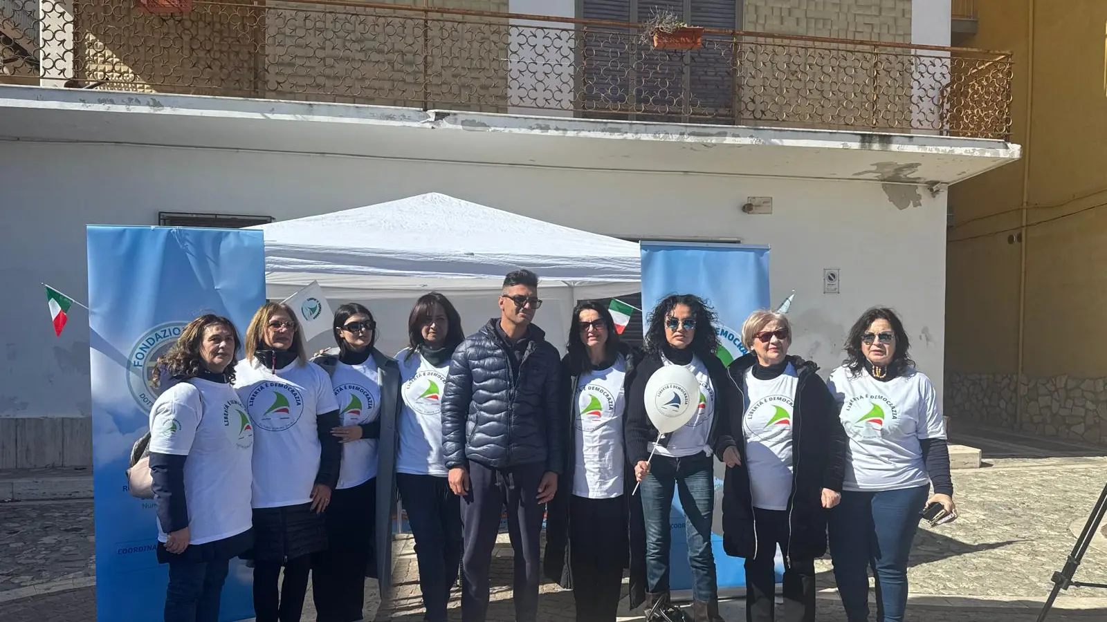 Il gazebo è stato allestito dalla Coordinatrice regionale politiche femminile del movimento per la Calabria Maria Teresa Dimanno, dalla Coordinatrice provinciale Politiche femminili di Crotone Loredana Gentile e dalla coordinatrice città di Cirò Marina di Libertà è Democrazia Giusi Nisticò. Presente anche la Coordinatrice Nazionale Pooitiche Femminile Cheti Cafissi. In piazza anche tanti cittadini e pescatori.