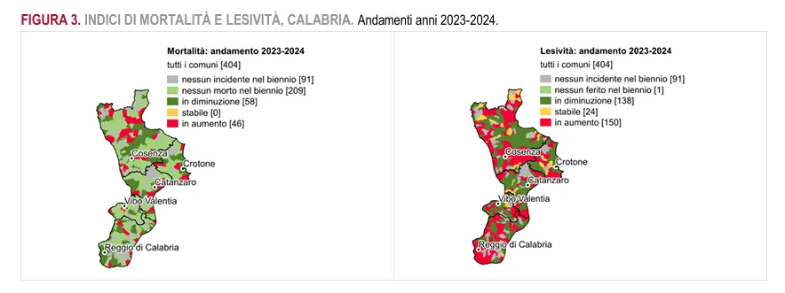 In questo quadro, la Calabria si avvicina agli obiettivi europei di sicurezza stradale, che prevedono il dimezzamento delle vittime entro il 2030 rispetto al 2019. Proprio confrontando il 2024 con il 2019, la regione registra una riduzione delle vittime pari al 7,7%, leggermente superiore alla media nazionale (-4,5%).