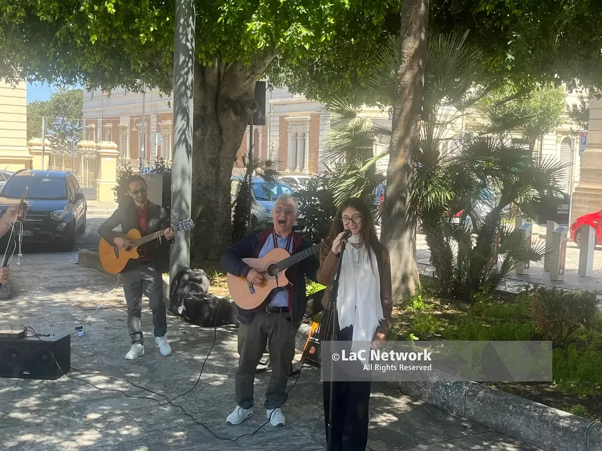 «È questo il fiore del partigiano, oh bella, ciao! bella, ciao! bella, ciao, ciao, ciao! È questo il fiore del partigiano morto per la libertà!». Ha risuonato la canzone simbolo della Resistenza Italiana in piazza Italia a Reggio Calabria, in occasione della celebrazione istituzionale della festa della Liberazione. Lo ha fatto grazie alla voce di Michelangelo Giordano e, a suggello della celebrazione, alla voce della giovane cantante Noemi Manarini, studentessa dell’indirizzo Musicale del liceo Scienze Umane Gullì di Reggio, accompagnata con la chitarra da Giuseppe Licordari.