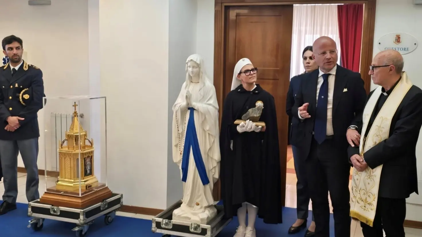 Nella mattinata odierna, l’associazione Unitalsi ha fatto visita alla Questura portando con sé le reliquie di Santa Bernadette.