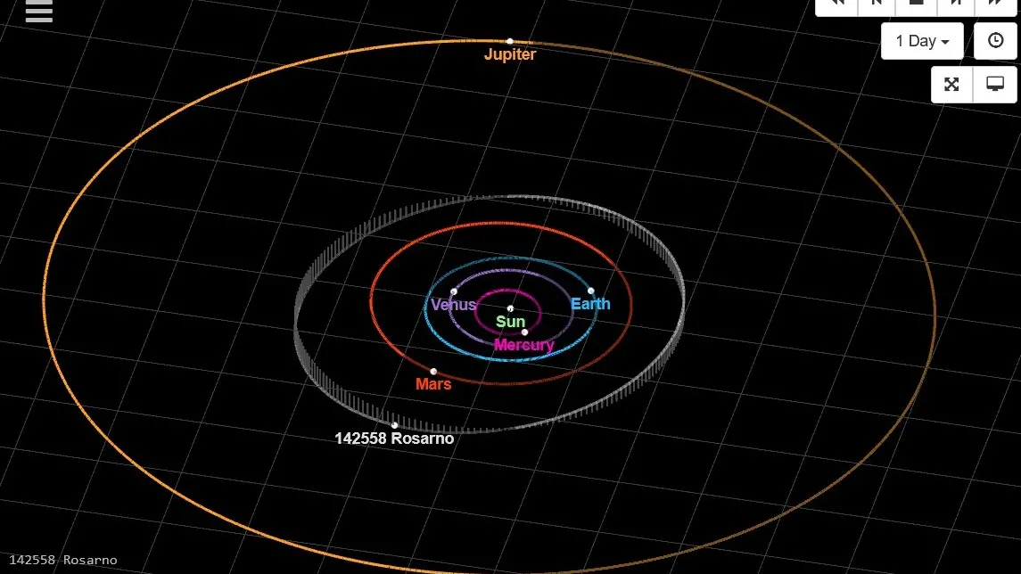 L’asteroide (142558) Rosarno è stato scoperto il 3 ottobre 2002 dall’Osservatorio di Campo Imperatore nell’ambito del programma CINEOS. La sua orbita è stabile e sicura, situata nella fascia principale degli asteroidi tra Marte e Giove, e non rappresenta alcun pericolo per la Terra.
