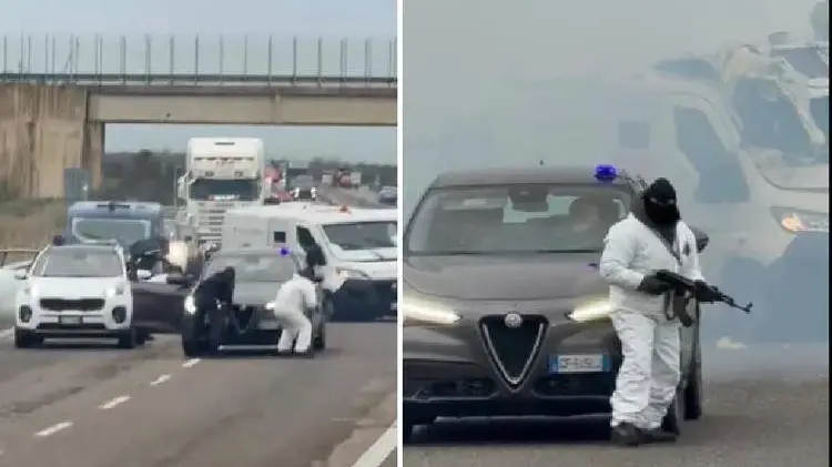 Durante l’azione sarebbero stati esplosi colpi d’arma da fuoco e si è verificato un inseguimento sulla statale da parte dei carabinieri. Non risultano feriti.
