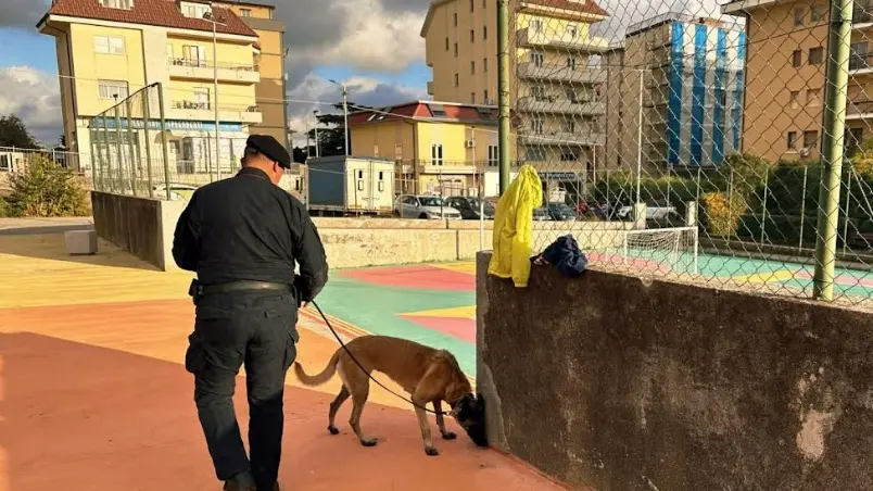 Durante i controlli, il protagonista è stato il cane antidroga Batik, una femmina di pastore belga, in forza al Nucleo Cinofili, che, grazie al suo fiuto, ha consentito di rinvenire circa 30 grammi di hashish. Rovistando tra alcuni rifiuti presenti nei pressi dei bagni pubblici del parco di Mater Domini, l’attenzione del cane è stata attirata da alcuni calcinacci abbandonati. Pochi attimi e Batik ha iniziato a scavare, fino a trovare la droga nascosta in un involucro di plastica. Era occultata in modo da sfuggire ai controlli, ma non al naso infallibile di Batik. La sostanza è stata sequestrata a carico di ignoti.