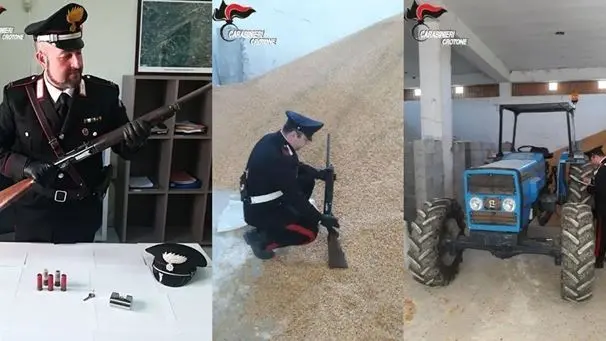 I mezzi sono stati restituiti al Comune di Isola Capo Rizzuto. L'ispezione accurata del capannone, di proprietà del Comune di Scandale, ha permesso di rinvenire, celato sotto diversi quintali di mais, un fucile calibro 12 Beretta, con matricola punzonata, nonché cinque cartucce a pallettoni dello stesso calibro.