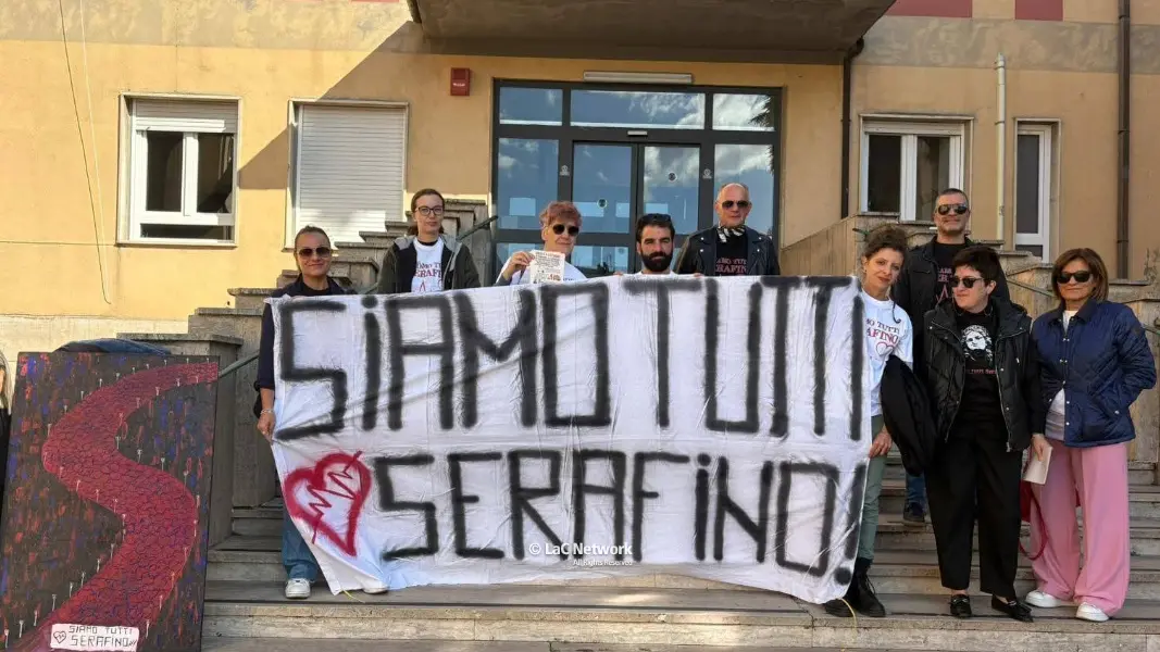 Lo striscione "Siamo tutti Serafino", pitturato nelle tristi notti di un gennaio silano, posto all'apertura della "Marcia silenziosa" con oltre 8mila persone in strada. Nove mesi dopo è ancora qui, nelle mani della mamma Rosa Nigro, del padre Giovanni Congi, della moglie Caterina Perri insieme agli amici, che in estate hanno dato vita all'associazione "Siamo tutti Serafino - Nel nome di Antigone". Nove mesi dopo, nel ricordo di un 48enne che non c'è, di una sanità che continua a "soffrire", ma con la volontà di chiedere "verità e giustizia" per Serafino Congi.
