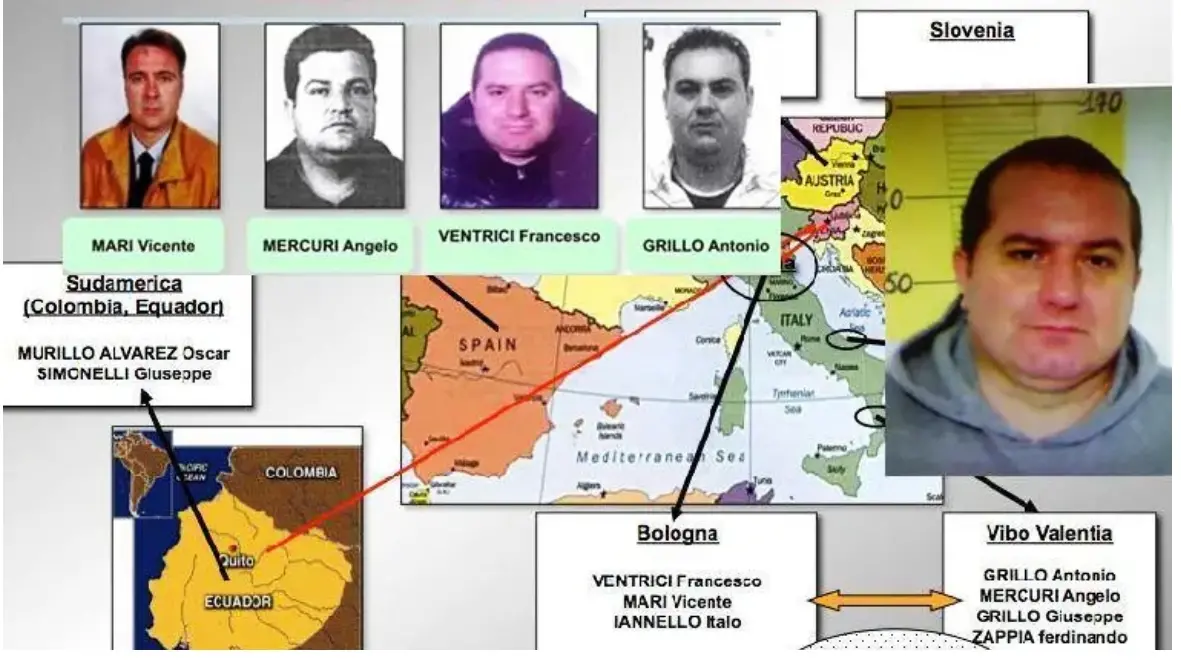 Associazione a delinquere finalizzata all’importazione di ingenti quantitativi di stupefacenti, la principale accusa mossa dalla Dda di Bologna. Al centro c’era il tentativo, poi fallito, di far arrivare una maxi-partita di cocaina di 1.500 chili che doveva partire dall’Ecuador e raggiungere l’Emilia-Romagna, via Lubiana. Una parte della droga era destinata anche al Vibonese. Nel 2011 le indagini portarono all’arresto di 14 persone tra Italia, Austria e Spagna. L’organizzazione avrebbe agito dal luglio 2010 al gennaio 2011. Finanziatore di alcune importazioni di cocaina – con bonifici bancari disposti il 28 aprile ed il 17 maggio 2011 – sarebbe stato Domenico Campisi, ucciso a Nicotera nel giugno 2011.