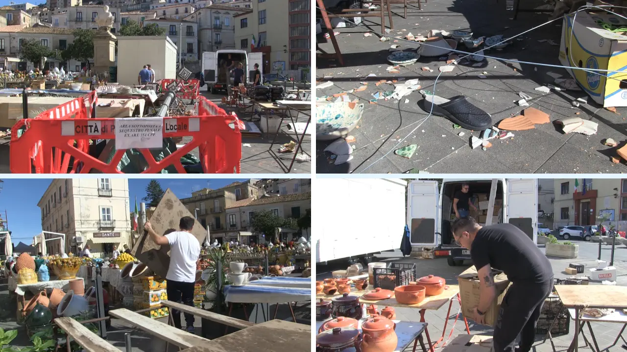 VIDEO | In piazza della Repubblica a Pizzo resta a terra il pesante lampione pubblico che lunedì mattina ha travolto Antonio Ditto, un ceramista 63enne che stava partecipando alla fiera. Sul posto oggi i familiari hanno raccolto la sua mercanzia per riportarla a Seminara. Intanto la Procura indaga