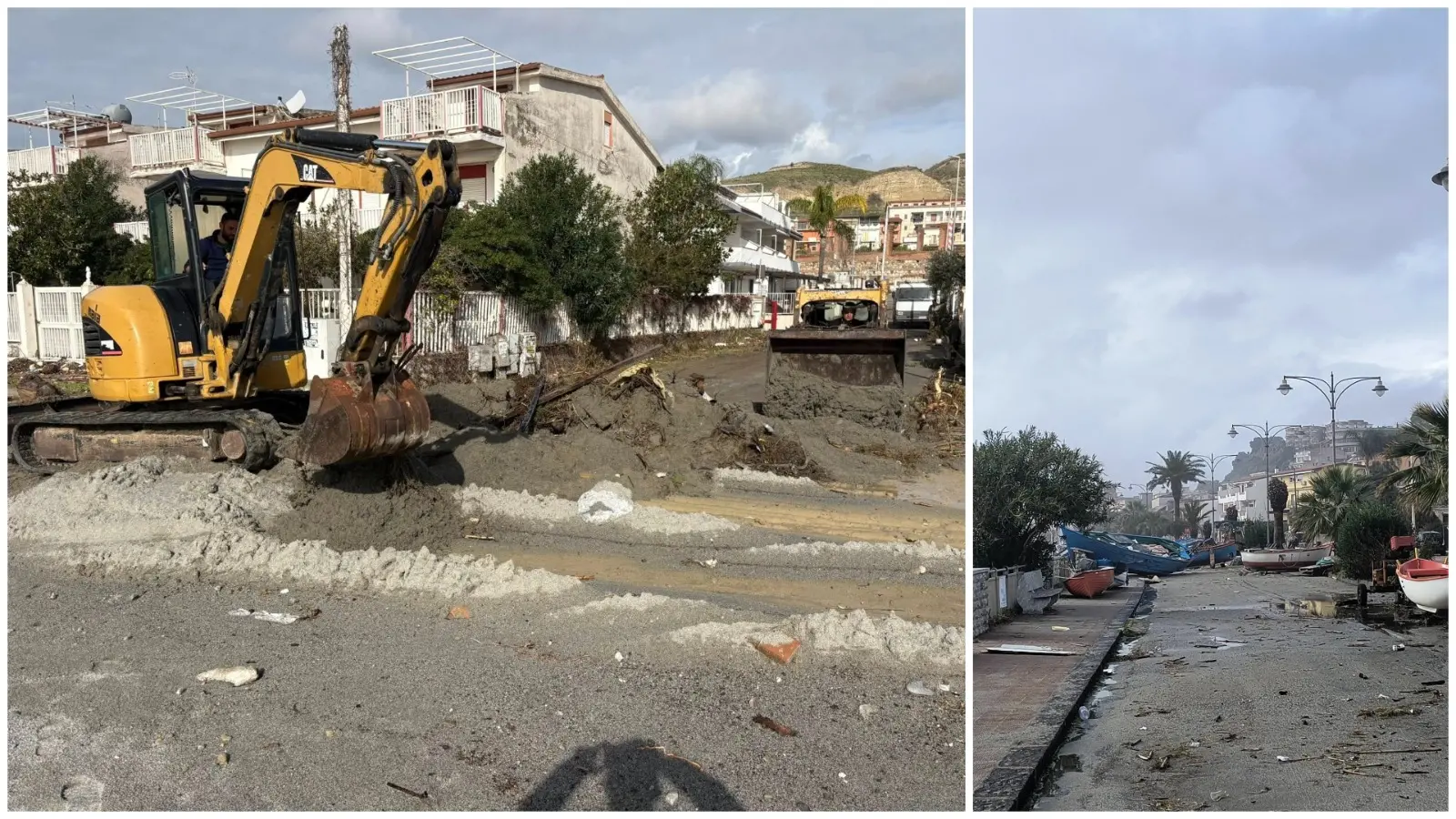 Il primo fronte di intervento è stato proprio il lungomare. «Abbiamo subito iniziato la pulizia di quello che resta – spiega il sindaco Sandro Polimeni – la parte nuova è praticamente implosa, mentre quella storica ha retto solo in parte ma con danni comunque pesantissimi». A rendere ancora più complesso il quadro è la situazione della rete fognaria. «Sul primo tratto del lungomare, ancora sterrato, la condotta è praticamente scomparsa. Stiamo valutando gli interventi necessari e i costi, ma la vera conta dei danni deve ancora iniziare».