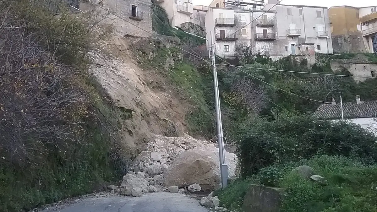 Senza collegamenti un centinaio di residenti, enormi massi sono crollati sulla strada provinciale. Per mettere in sicurezza l’area serviranno tempo e risorse (che oggi non ci sono)