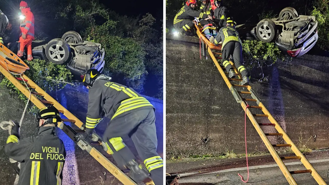 A bordo del veicolo due ragazzi di 25 e 27 anni. Ad avere la peggio il passeggero. Entrambi sono stati trasportati in ospedale. Sul posto carabinieri e vigili del fuoco