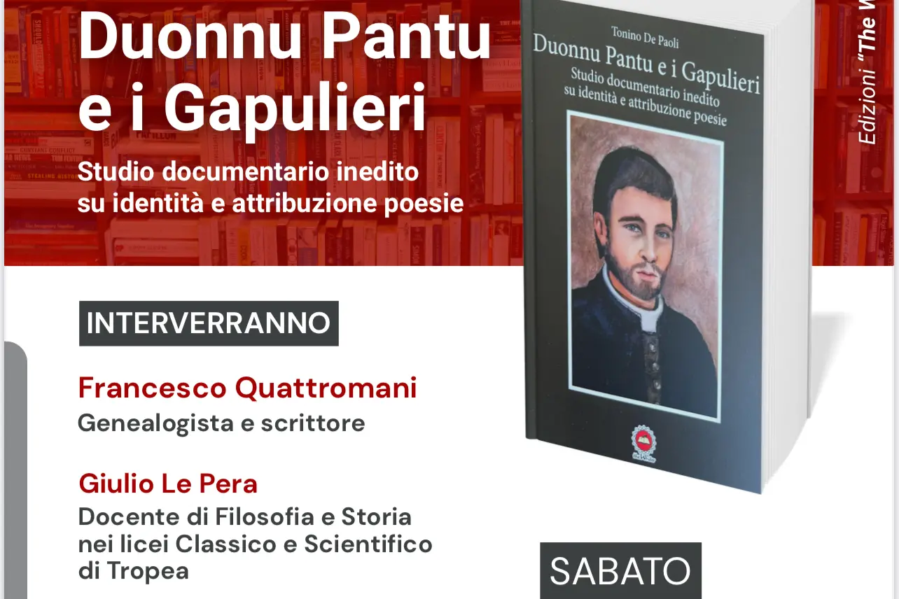 Per decenni le sue “poesie proibite” furono attribuite a diversi autori, finché ricerche recenti hanno riportato alla luce la possibile paternità di don Piro. È in questo intreccio di identità, censura e memoria popolare che si colloca il nuovo importante studio documentario di Tonino De Paoli. “Duonnu Pantu e i Gapulieri”, un’indagine storico-letteraria che tenta di restituire verità e contesto a una voce sommersa della tradizione calabrese. Un lavoro complesso durato alcuni anni, una vera e propria indagine approfondita e inedita.