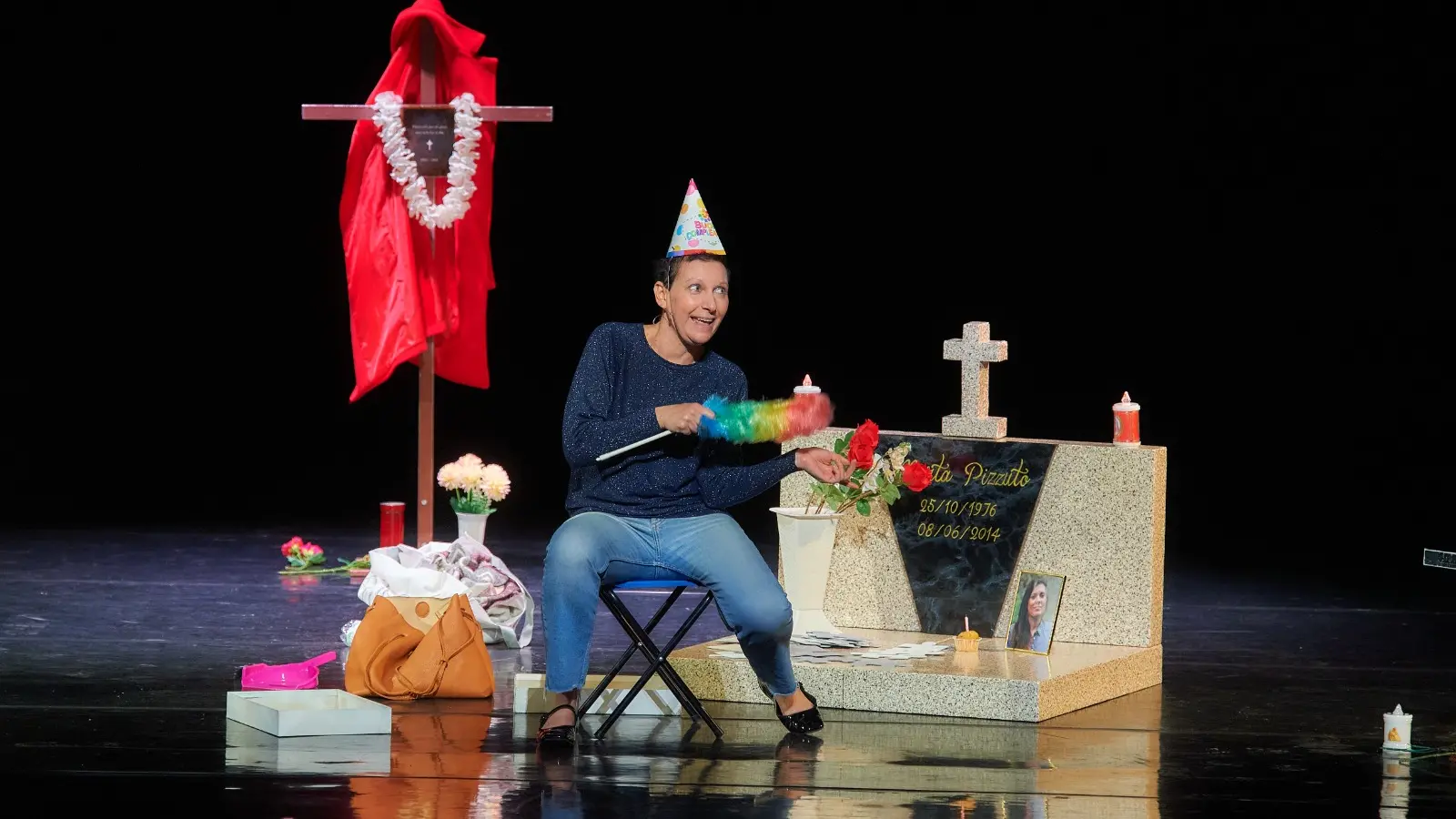 In scena – lo scorcio di un cimitero colorato – prende forma il viaggio di una donna che si muove tra memoria e dolore, tra ciò che è stato e ciò che non è mai stato detto. Un racconto che diventa specchio di tante vite, di tante storie rimaste sospese, trattenute, mai davvero condivise. Cristina, la protagonista, si reca al cimitero per far visita alla sorella Marta, nel giorno del suo quarantaquattresimo compleanno. Ma questa volta qualcosa cambia. Cristina porta con sé un segreto, un peso che non è mai riuscita a condividere. Un’urgenza che la spinge a restare più a lungo, a trovare il coraggio di dire ciò che fino a quel momento è rimasto inespresso. Lo spettacolo si rivolge in particolare alle donne, ma non si limita a loro. Parla anche agli uomini, con un linguaggio lontano dalla rabbia e più vicino a una riflessione profonda e sincera. Non è un atto d’accusa, ma un invito ad ascoltare, a comprendere, a riconoscere.