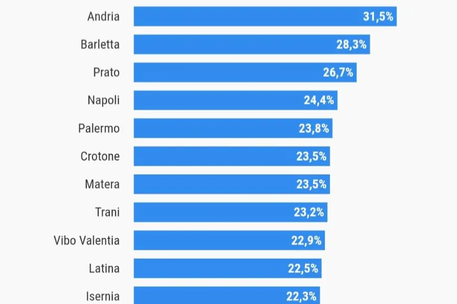 Secondo Openpolis, Vibo, Crotone, Reggio e Catanzaro sono tra le città in cui il fenomeno è più preoccupante nei nuclei familiari con bambini piccoli. Il demografo Giovanni Durante spiega: «Il nodo è la disuguaglianza territoriale, servono politiche integrate e infrastrutture sociali reali»