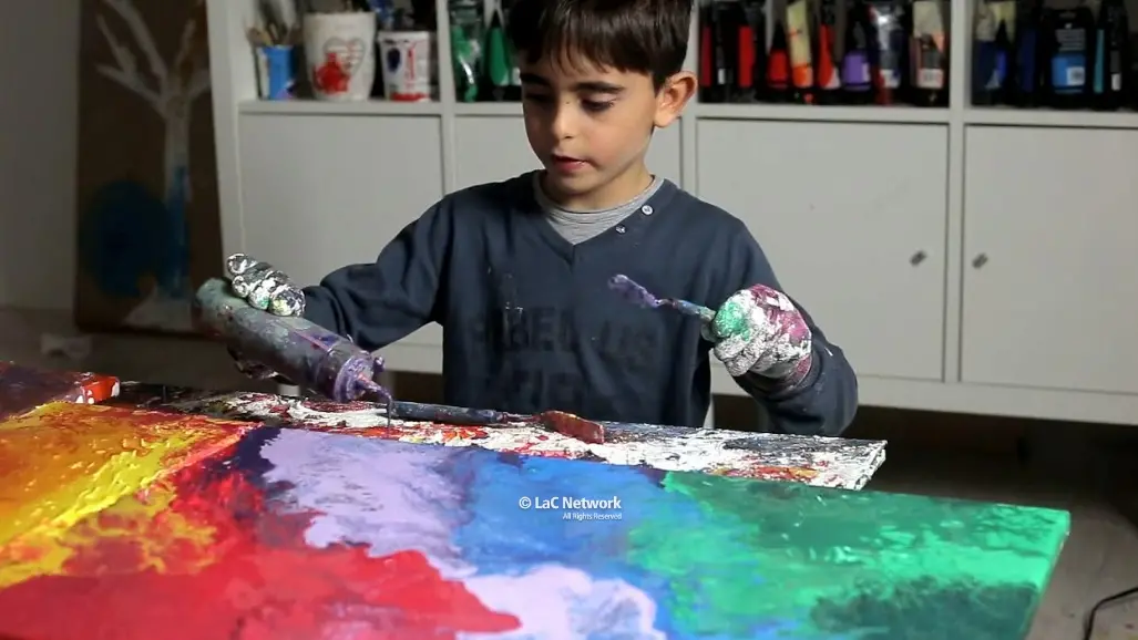Con il supporto della sorella Gaia, e dei genitori Diego e Paola, Manuele trasforma qualsiasi spazio in una tela, dipingendo con ogni materiale a disposizione e dando vita a opere che stupiscono.