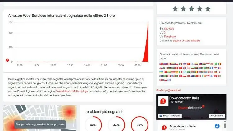 Le prime ore di questo lunedì sono state segnate da un diffuso e grave down che sta interessando una vasta gamma di servizi online a livello globale, con Amazon e la sua unità cloud Amazon Web Services (AWS) al centro dell'emergenza. Le segnalazioni di malfunzionamento, che hanno raggiunto picchi elevatissimi su piattaforme di monitoraggio come Downdetector, riguardano sia i servizi di e-commerce di Amazon sia, in modo cruciale, le infrastrutture cloud essenziali.
