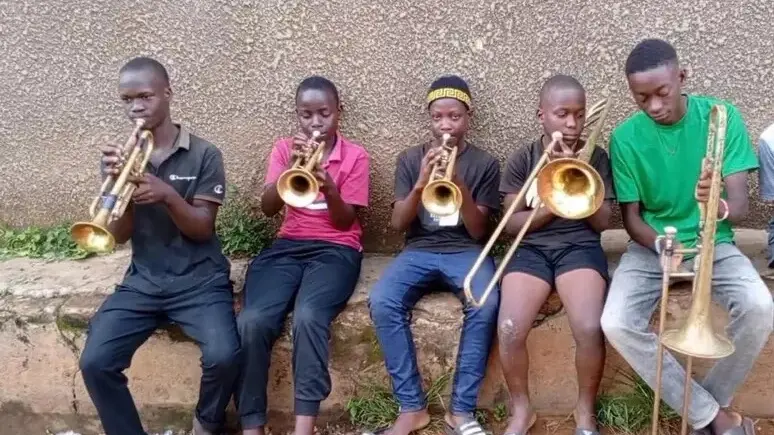 I due musicisti hanno acquistato dieci strumenti: cinque trombe e cinque tromboni, mettendo insieme soldi di tasca loro e chiedendo un piccolo contributo ad amici, per una spesa totale di circa 1500 euro. Gli strumenti verranno spediti proprio in questi giorni in Uganda, diretti verso la Mityana brassband foundation. «Nel 2022 lavoravo come fattorino per la consegna di medicinali a Mityana, recandomi di villaggio in villaggio – spiega Henry Kalungi, 26 anni, fondatore della Mityana brassband foundation –. Tutto è cambiato quando ho incontrato Colony, un ragazzo di Kampala, che non aveva i soldi per potersi permettere di studiare, voleva imparare a suonare, ma non aveva proprio la possibilità di farlo. Così ho iniziato, attraverso il mio stipendio, a raccogliere dei soldi, e ho comprato i primi strumenti. Poi ho aperto la Mityana brassband foundation. Ho sempre avuto una forte spinta verso i bambini perché purtroppo sono cresciuto senza i miei genitori, accudito da mia nonna e questo ha plasmato il mio cuore. La nostra fondazione esiste perché io comprendo le loro difficoltà. Fatico molto a tirare su questa scuola, ma lavoro ancora duramente e quando vedo questi ragazzi scoprire la speranza attraverso la musica, quando so che stanno imparando invece di arrendersi, penso che ne è valsa la pena. Al momento nella nostra scuola sono presenti quaranta giovani musicisti».