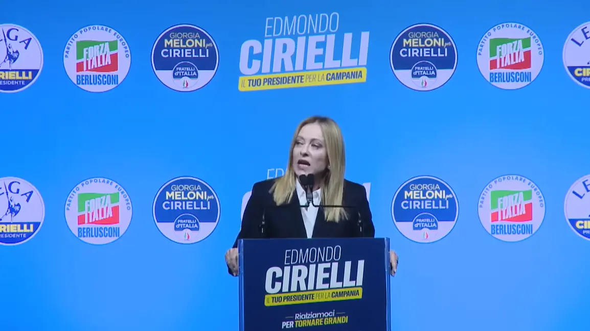 Il comizio si muove su un doppio registro: da un lato Meloni rivendica la compattezza del centrodestra, dall’altro attacca il centrosinistra su quella che definisce «una politica che non rispetta i cittadini». Il bersaglio è la gestione regionale, la retorica del “modello Campania”, l’idea di un’amministrazione che – nella sua lettura – si nasconde dietro i dati anziché affrontarli.