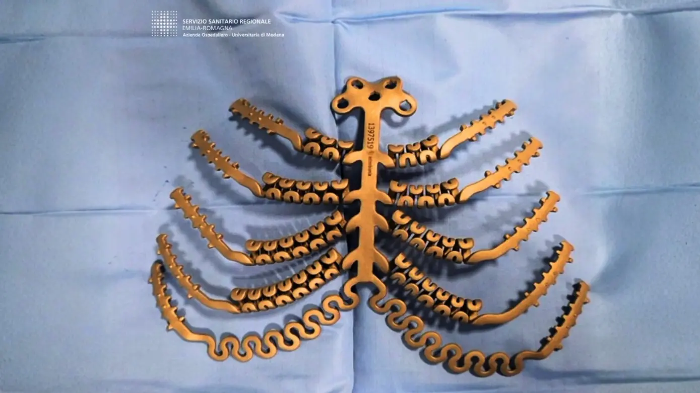 Uno sterno in titanio, realizzato con stampa 3D, sostituisce da qualche giorno quasi interamente quello di una paziente di 68 anni che era affetta da metastasi da carcinoma ovarico, già operato.