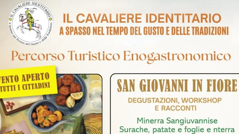 È ufficialmente partito il progetto “Cavaliere Identitario – A spasso nel tempo del gusto e delle tradizioni”, un’iniziativa che celebra l’identità territoriale attraverso il cibo, la memoria e la cultura popolare. Promosso dalle associazioni Anziani Italia e Volare aps di Rende, guidate rispettivamente da Maria Brunella Stancato e Antonio Volpentesta, il progetto è patrocinato da Op Associazione Olivicola Cosentina, Fondazione Carical e Arsac, con la collaborazione dell’Associazione Primavera Florense e del Consorzio Olio di Calabria IGP.