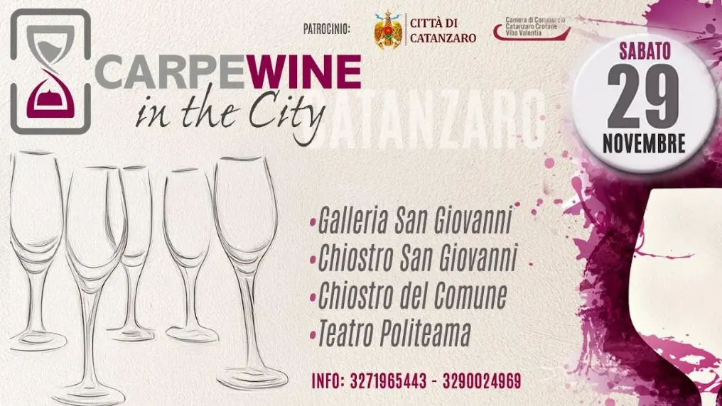 L’iniziativa, patrocinata dal Comune di Catanzaro – si legge in una nota stampa - porterà nel cuore del centro storico un percorso diffuso dedicato alla scoperta delle eccellenze enologiche calabresi, con degustazioni, musica e momenti di approfondimento. Si parte nel pomeriggio, alle 16:00, con una presentazione di auto e test drive. Alle 18:30 si entra nel vivo: verranno distribuiti i calici per seguire il percorso CarpeWine e iniziare un tour tra quattro location simboliche della città — la Galleria San Giovanni, il Chiostro San Giovanni, il Chiostro del Comune a Palazzo De Nobili e il Teatro Politeama.