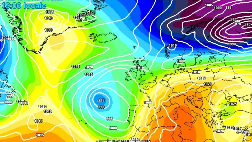Tale miglioramento sarà più accentuato a partire dalla giornata di mercoledì: l'affondo di una saccatura ad ovest della Spagna causerà la risalita dell'anticiclone sul Mediterraneo. Tempo stabile infatti è previsto su quasi tutta l'Europa tra cui Spagna, Francia, Germania e Italia con temperature in generale aumento.