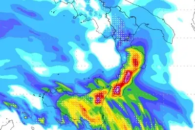 Oltre ai venti e alle mareggiate però sono attese violente precipitazioni: le aree più a rischio saranno soprattutto quelle joniche del Reggino, Catanzarese e Crotonese e relative aree interne dove si potranno raggiungere picchi fino ai 250-300 mm. Entriamo però nel dettaglio di questo peggioramento.