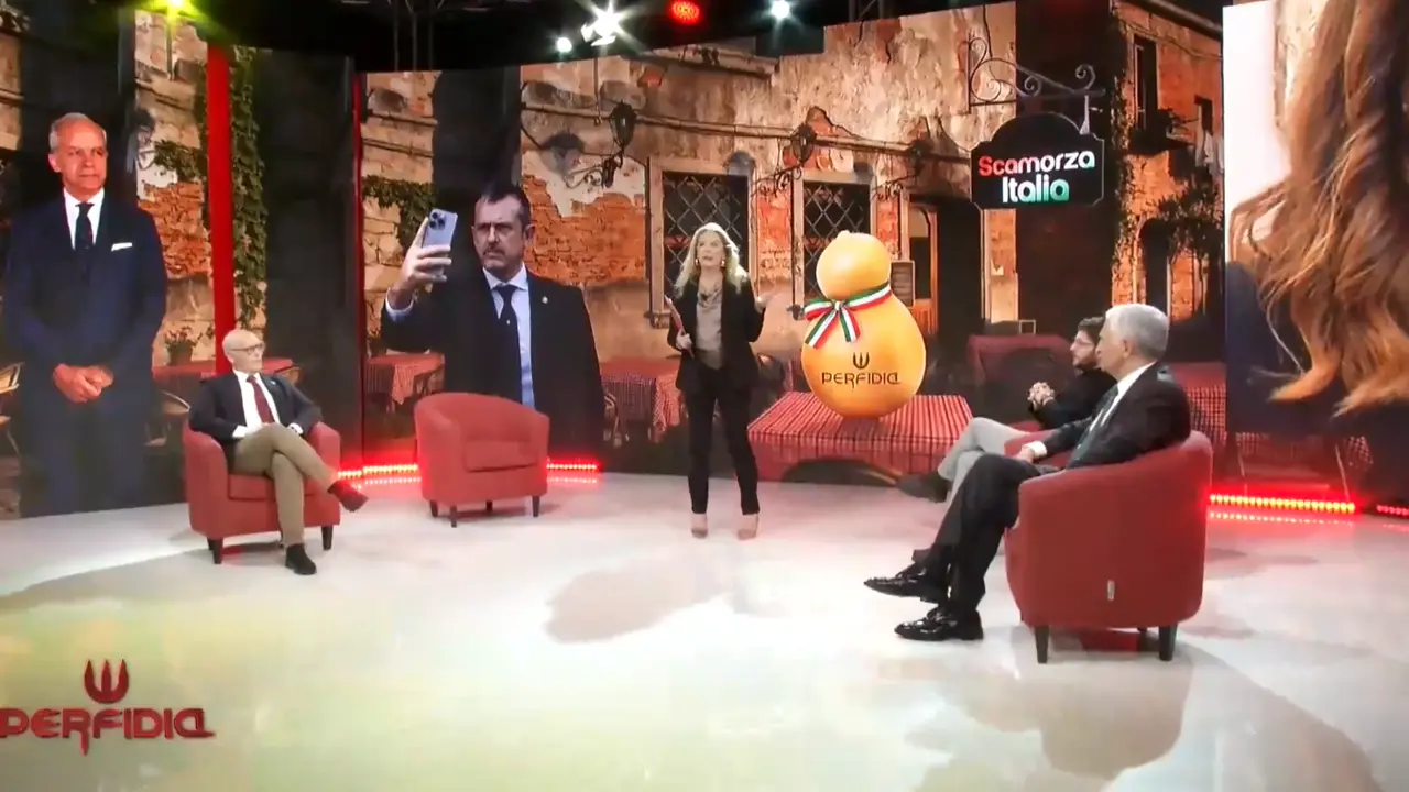 Vittoria Baldino ha proposto una lettura più ampia del titolo della trasmissione, sostenendo che “scamorza” rappresenti la dissoluzione dell’Italia davanti a Donald Trump, rispetto al quale – secondo la deputata – il Paese non riuscirebbe a prendere una posizione netta.