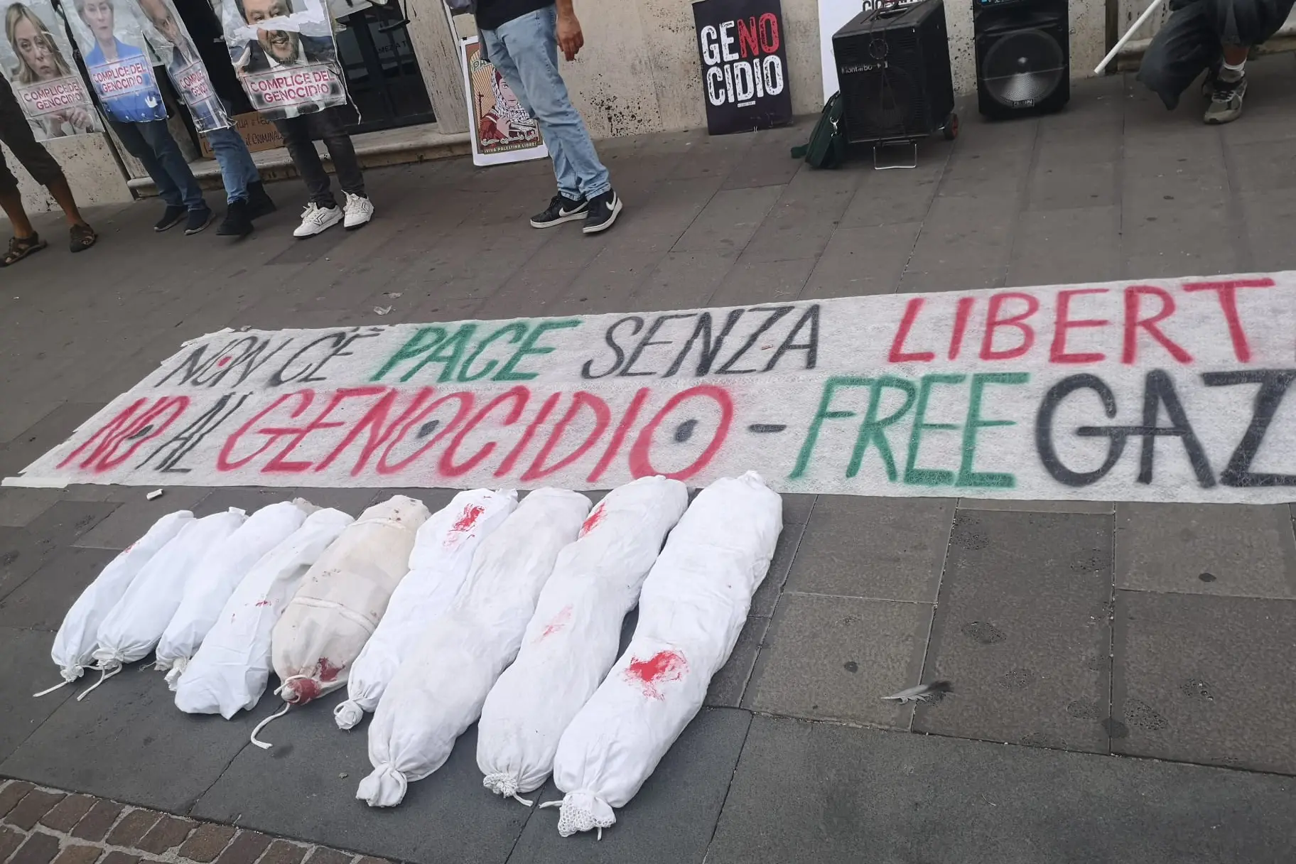 «Io sono egiziano – dice Sayed – viviamo al confine con Gaza quindi conosco la realtà che la gente sta passando lì e siamo venuti qua oggi per rompere il silenzio, in un paese democratico come l’Italia in cui non si poteva più parlare di quello che stava succedendo: un genocidio in diretta. Stiamo ritornando davvero al periodo dei fascisti». Dell’Egitto e della vicinanza con la Palestina Sayed ricorda «i muri messi lì da 19 anni e la gente che non può decidere di andar fuori, di fare un viaggio, di avere un semplice passaporto. Siamo nel 2025 e accadono ancora queste cose: ci sono popoli che stanno in un carcere a cielo aperto e questo fa veramente male».