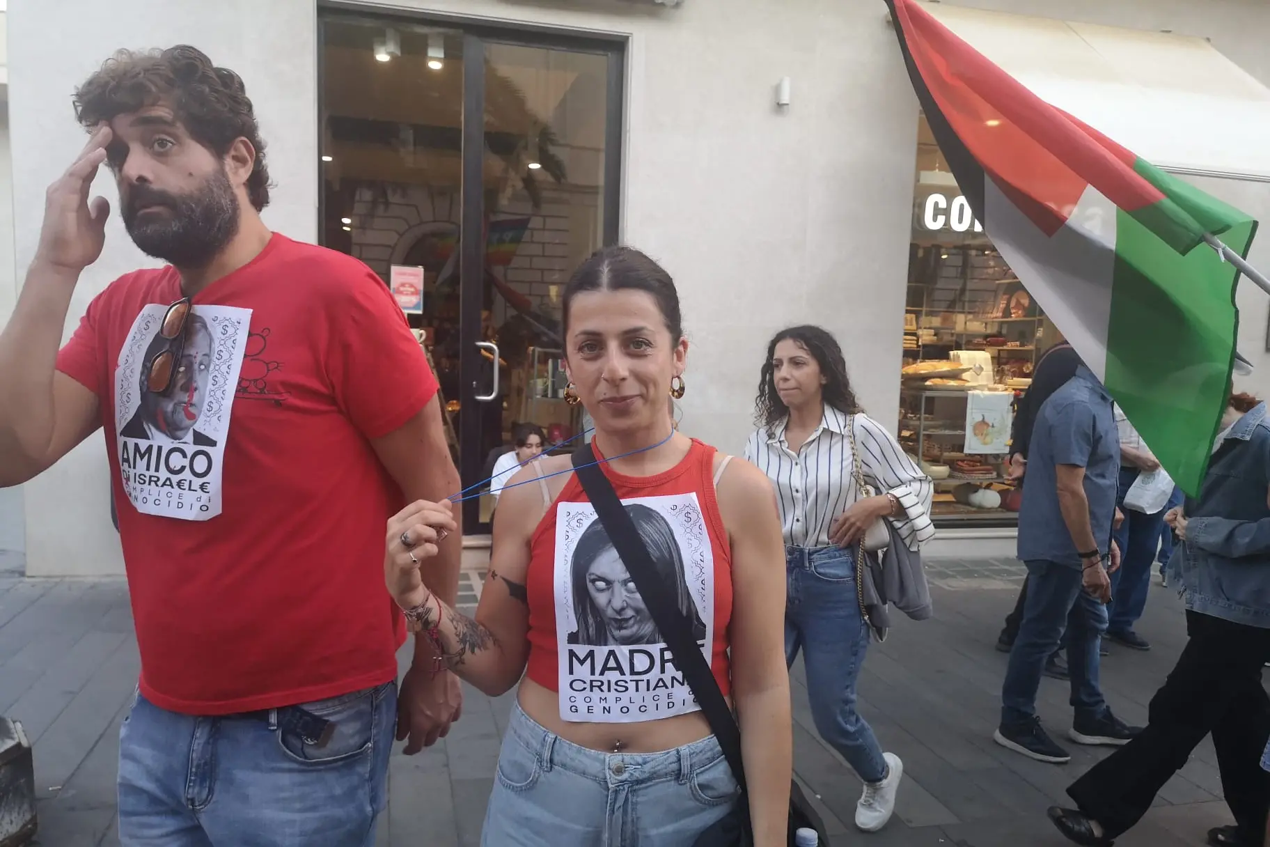 Nella piazza pro-Palestina ci sono famiglie, ragazzi e anche pensionati. Alcuni appartengono alla vecchia guardia comunista che ricorda le barricate degli anni ’70. Come Luigi che ci racconta di essere presente alla manifestazione perché, dice «innanzitutto sono un essere umano e quello che sta succedendo oggi in Palestina è disumano. È un eccidio che non ha niente a che vedere con una guerra perché si tratta di un esercito che sta uccidendo donne e bambini indifesi». Degli esponenti politici che stanno dall’altra parte del corso gli interessa poco: «La manifestazione ha valore per quello che è: a favore della Palestina. Poi il fatto che oggi ci sia in concomitanza la manifestazione del centrodestra è un’occasione, visto che a livello governativo nessuno si sta muovendo, perché è stata la popolazione civile che si è mossa. Può essere una risposta a quello che non sta facendo il governo».
