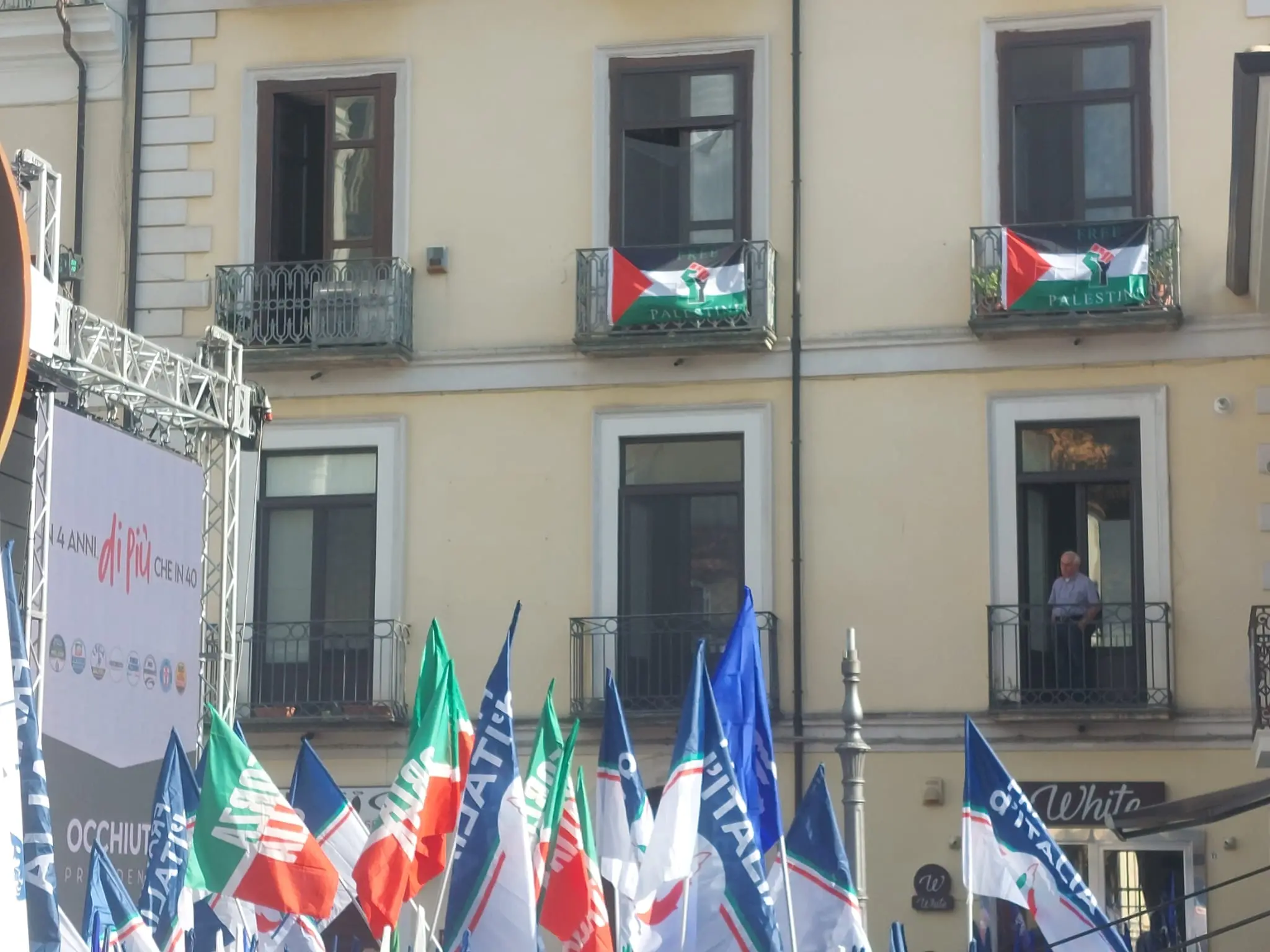 La protesta pro-Pal è stata annunciata e intesa come un sit-in per protestare contro la compiacenza del governo Meloni riguardo alle politiche di Israele in Palestina. Che una parte di Lamezia sia schierata contro il genocidio a Gaza è chiaro e se ne accorgeranno anche i leader del centrodestra chiamati sul palco. Da un paio di appartamenti che danno su corso Numistrano campeggiano bandiere della Palestina.
