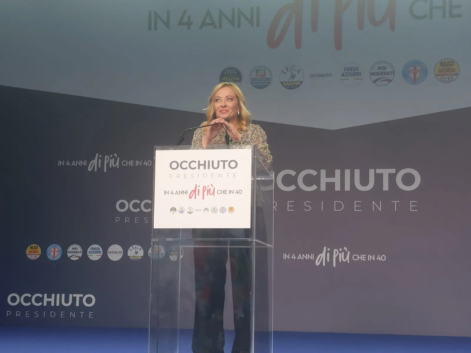 Nelle Marche «hanno messo temi importantissimi come quelli di politica internazionali» al centro di una campagna elettorale che si è conclusa con «8 punti di differenza, un mare, il mare adriatico tra Acquaroli e questo benedetto campo largo che sembra immediatamente sciogliersi. Dobbiamo continuare qui in Calabria con il buongoverno» anche perché dall'altra parte «hanno candidato chi è stato presidente dell'Inps che ha avuto il disonore di» attuare «il reddito di cittadinanza, un insulto alle Regioni del Sud» cui bisogna dare «la dignità del lavoro».
