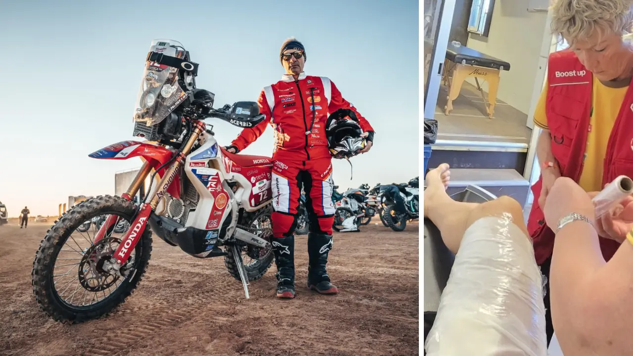 Il pilota cosentino ha spiegato le difficoltà fisiche che lo hanno costretto a fermarsi: «Uno strappo all’inguine rimediato sulle dune di Merzouga (Day 2), una forte contusione all’interno coscia e le mani segnate dalle vesciche mi hanno tolto la possibilità di stare correttamente in piedi sulle pedane e di stringere il manubrio con la forza necessaria. Nel deserto non sono ammessi errori e la prudenza deve prevalere sulla testardaggine».