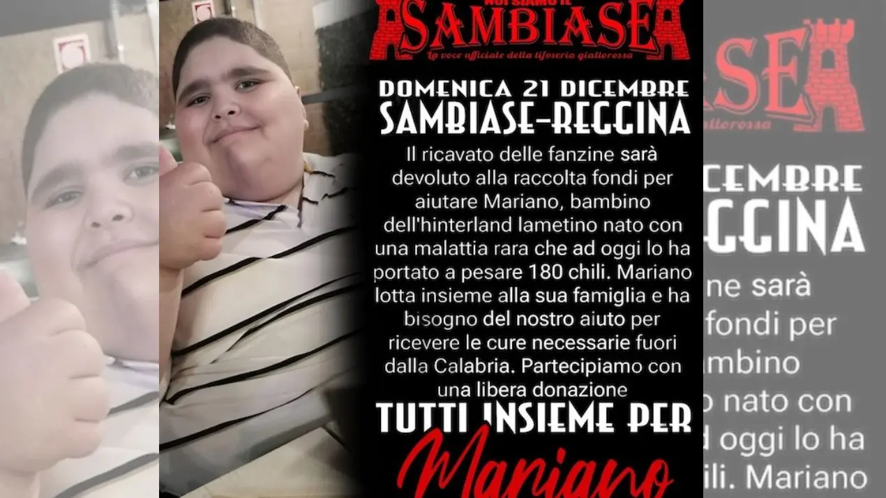 Il calcio diventa veicolo di solidarietà e speranza. In occasione della gara Sambiase-Reggina, in programma domenica 21 dicembre, la tifoseria giallorossa lancerà un'importante iniziativa benefica a sostegno di Mariano, un bambino dell'hinterland lametino affetto da una rara patologia che lo ha portato, nel tempo, a raggiungere un peso di 180 chili.