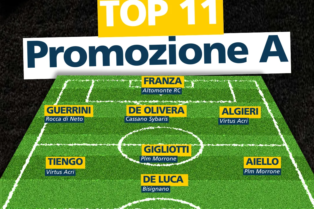 Come ogni settimana, la redazione sportiva del network LaC ha stilato la Top 11 dell’undicesima giornata. La formazione ideale è guidata dal tecnico della Plm Morrone, Lorenzo Stranges, che ha portato i suoi alla vittoria nel big match in casa del Mesoraca. Tra i protagonisti della sfida contro i crotonesi c’è certamente Aiello, autore del gol vittoria dei granata cosentini. Nell’undici titolare la Plm Morrone piazza anche Gigliotti, autore di una buona prestazione e dell’assist decisivo.