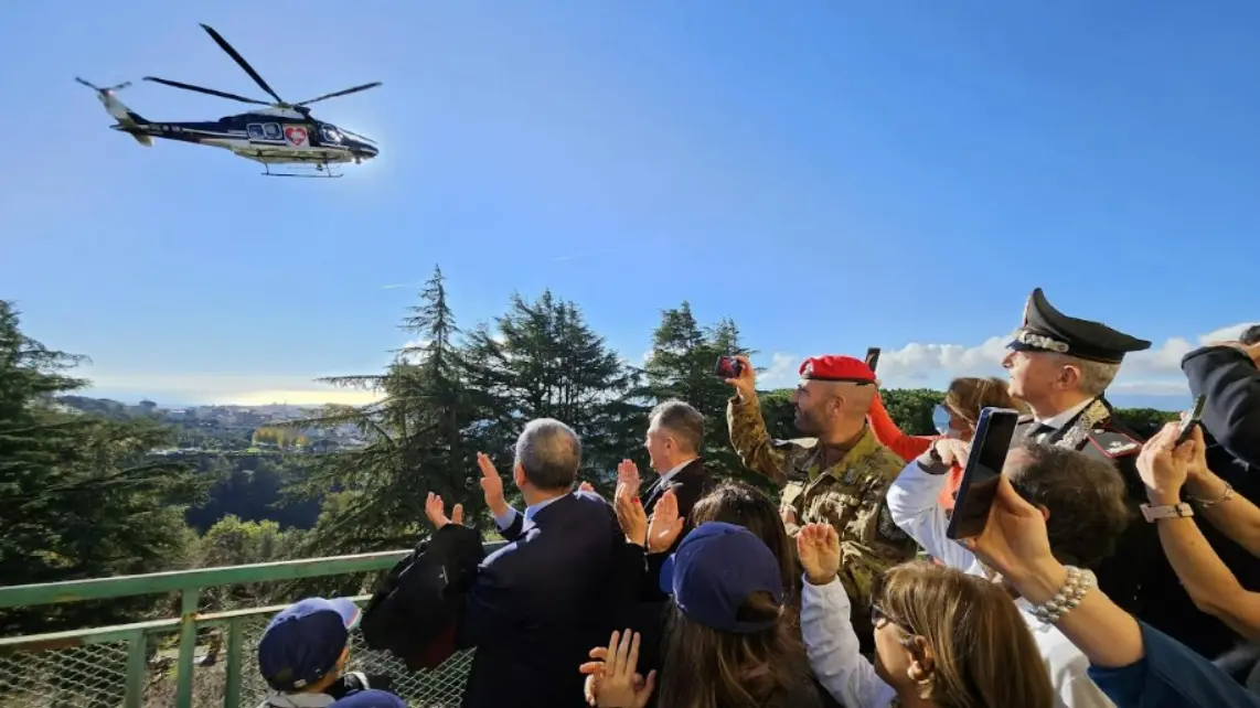 Il sorvolo sull'ospedale ha suscitato lo stupore dei piccoli che, affacciatisi sul balcone, hanno salutato con gioia l'originale e inaspettata visita. Dopo il passaggio dell'elicottero, il comandante della Legione Calabria, generale Riccardo Sciuto, il vice comandante, generale Francesco Iacono, il comandante provinciale di Catanzaro, colonnello Giuseppe Mazzullo, il comandante dello Squadrone "Cacciatori Calabria", tenente colonnello Davide Montinaro e una rappresentanza di militari del Comando provinciale di Catanzaro, dei Cacciatori e dell'8° Nucleo elicotteri di Vibo Valentia, accompagnati da Babbo Natale, da Batman e da 2 unità cinofile, hanno distribuito ai giovani pazienti libri, giocattoli e vari gadget.